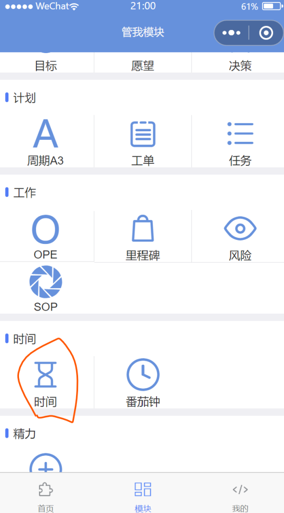 时间管理模块,可以进行时间统计,记录每一步时间的花费,记录在不同的工单中,记录后,自动进行日、周、月、年统计,自动进行工单的总用时统计。